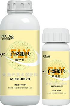 高钾型,配合螯合态铜元素,帮助提升微量元素吸收效果,有利于光合产物向成熟部位的运输,加速籽粒和果实的自然成熟